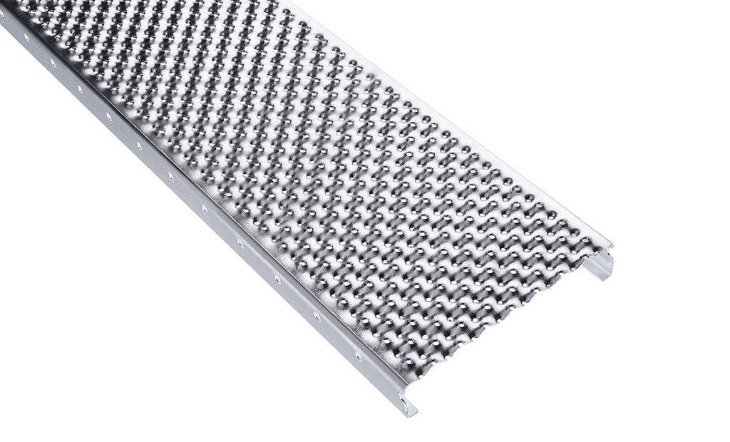 Der Blechprofilrost Typ BN-OP5 „Noppe offen plus 5 mm“ wurde speziell für den öffentlichen Bereich entwickelt um auch sehr kleinen Absätzen halt zu bieten. „High Heel proof“ wird der Blechprofilrost BN-OP5 durch nach oben und unten geprägte Löcher mit einem Durchmesser von 5 mm, das Stanzraster entspricht dem Typ BN-OP8. Die kleinen Öffnungen verhindern ebenfalls wirksam ein Hindurchblicken von unten.