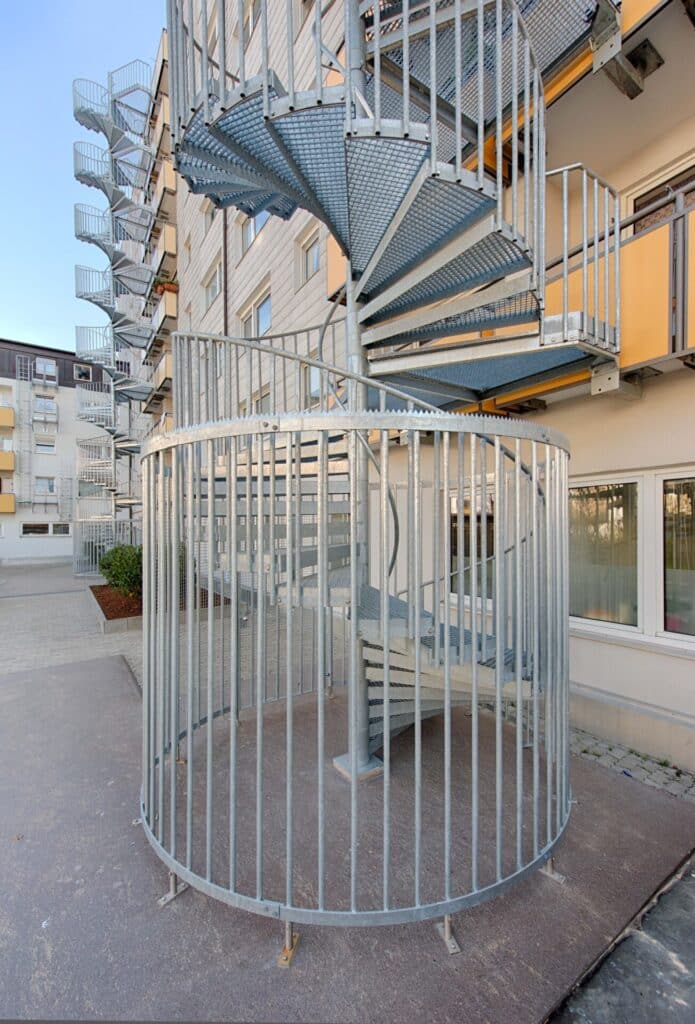 Unser Sortiment an Spindeltreppen umfasst neben dem Modell „LG Standard“ außerdem die beiden Kategorien „LG Spezial“ und „LG Express“, wobei das Express-Modell für Sie dann infrage kommt, wenn Ihre Bestellung eilt. Wie das Modell „LG Standard“ kommt auch unser Spindeltreppen-Typ „LG Spezial“ in einer feuerverzinkten Ausführung und ermöglicht mit der speziellen Systembauweise eine einfache Selbstmontage. Funktionssicher und zuverlässig eignet sich dieses Modell für viele Verwendungszwecke und wird bis zu einem maximalen Treppendurchmesser von 3.300 Millimetern angefertigt. Entgegen dem Spindeltreppen-Modell „LG Standard“ ist das Modell „LG Spezial“ ausgelegt für bis zu 5 kN/ m2 beziehungsweise einer 2 kN Einzellast. Dieser Spindeltreppen-Typ lässt sich also individueller nach Ihren Anforderungen anpassen.In öffentlichen Bereichen kann es außerdem hilfreich sein, wenn Ihre Spindeltreppen bzw. Wendeltreppen mit einem Schutzkäfig ausgestattet sind, um für zusätzliche Sicherheit zu sorgen. Außerdem sind diese abschließbar, sodass die Spindeltreppen von unten nicht begehbar sind. So können Sie das Eindringen von unerwünschten Personen verhindern. Im Privatbereich hingegen kann die Option eines Kinderhandlaufs vor allem sinnvoll sein, um auch den kleineren Benutzern der Spindeltreppe bzw. Wendeltreppe eine Möglichkeit zum Festhalten zu bieten.